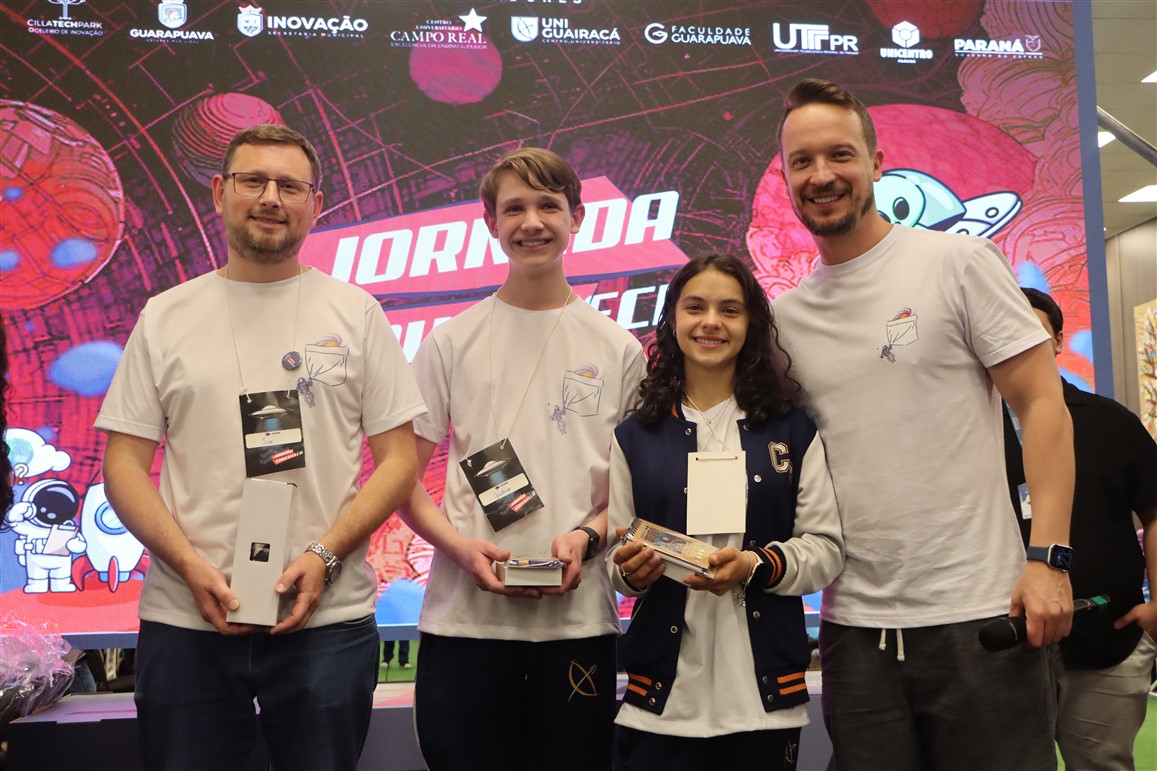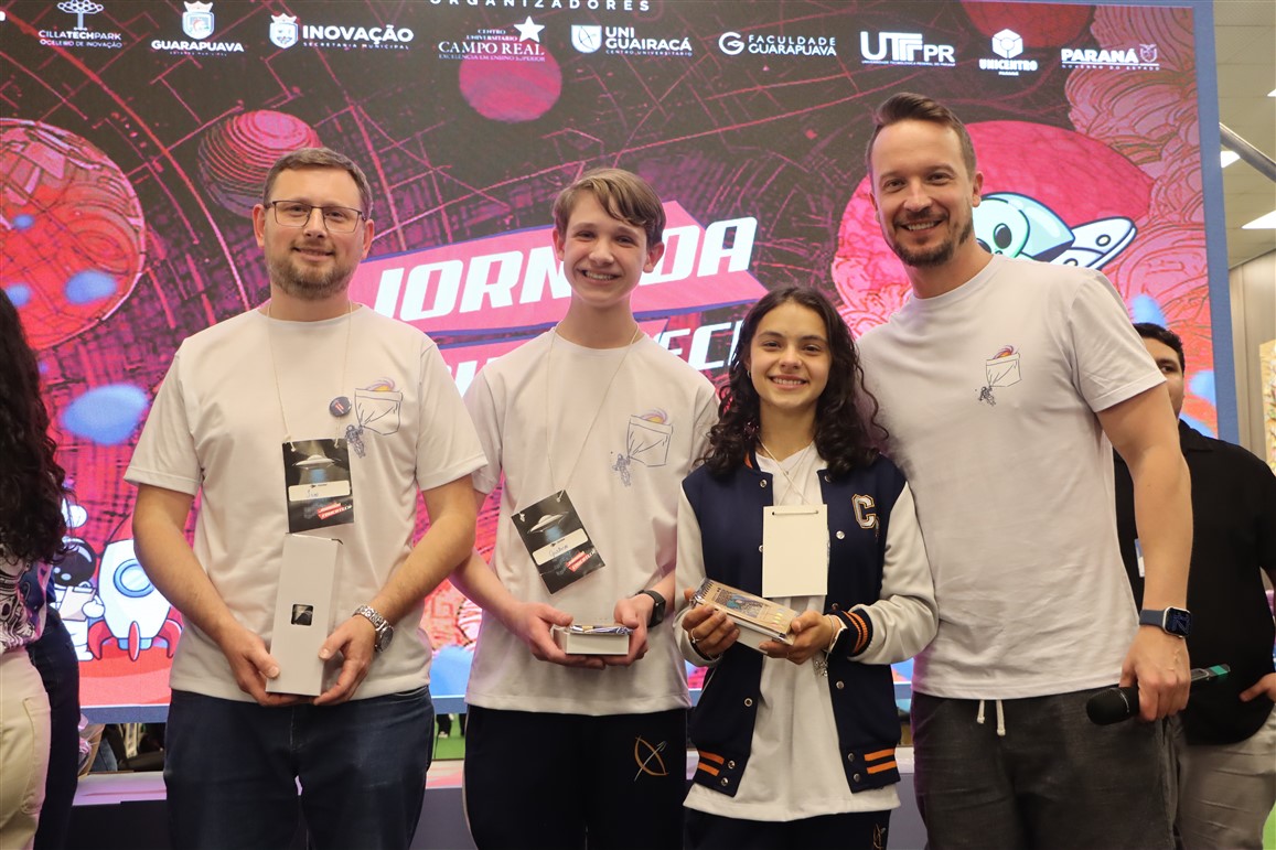 Na tarde desta quarta-feira (1), aconteceram as premiações da Jornada Educatech, maior evento educacional, científico e tecnológico da Região. O Colégio Guairacá conquistou o 2º Lugar na categoria Projeto Destaque, com o Hydro Alerta, dos alunos Ana Schons e Gustavo Gniech, orientados pelo professor Ivo Antônio Zapotoczny.