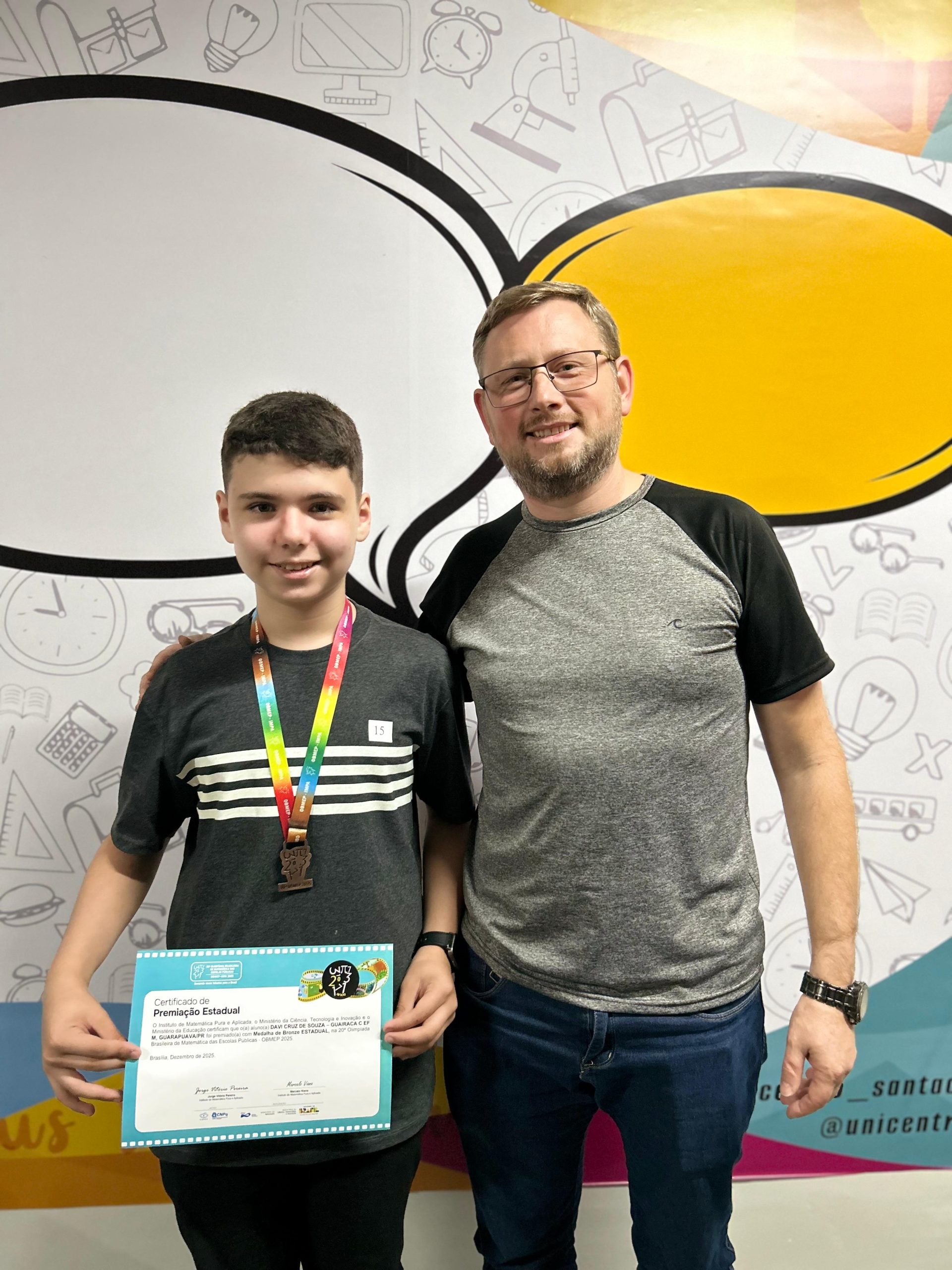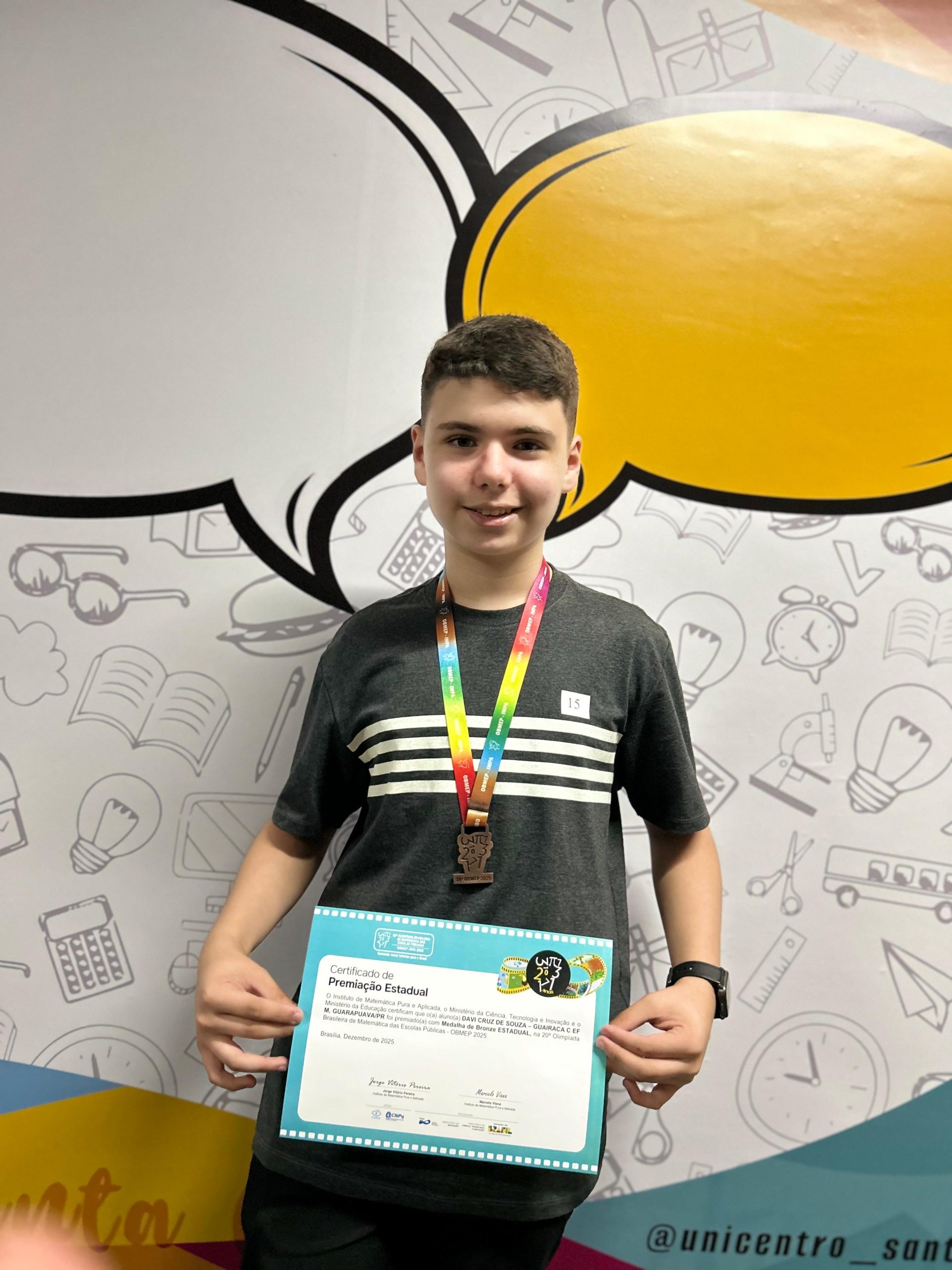 A conquista se deu por conta da participação de Davi na edição de 2025 da olimpíada, quando estava cursando o 7º ano do ensino fundamental. A cerimônia de premiação foi realizada na Universidade Estadual do Centro-Oeste (Unicentro), no câmpus Santa Cruz, reunindo alunos destaques das escolas de Guarapuava e região. Para ele, a conquista representa um incentivo para continuar evoluindo. “Eu aprendo cada vez mais e continuo me dedicando pra eu ficar bem no futuro”, afirma Davi.